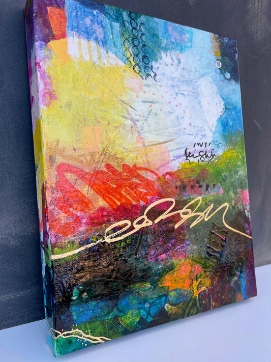 Enjoy browsing my original art and items created from it. I've painted and collaged a wide variety of abstract, mixed media art pieces in many sizes and themes. Everything is unique, bright, colorful and meant to spark joy! Bringing original art into your home adds interest and flare like no other, and gifting original art is the best way to ensure giving a gift that stands apart. Happy shopping!